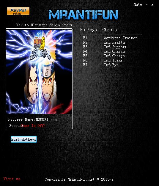 火影忍者究极忍者风暴修改器,该修改器具备无限生命,无限脉轮,无限电荷,无限支持,无限道具,无限亮等六项修改器功能,这样可以使新手更快的进入游戏,适合游戏的玩法,喜欢这款修改的朋友可以开体验一下。