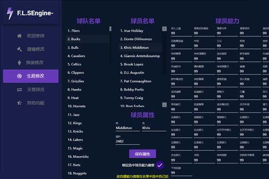 nba2k22飞雷神修改器是一款专门为游戏nba2k22提供的游戏数据修改工具。相信有非常多喜欢玩游戏的小伙伴都觉得游戏需要长时间肝太难受了。现在小编分享的这个nba2k22新版飞雷神修改器就可以很好的帮助用户修改游戏各种属性和各种选项。让你做到轻松的自定义名单、球员交易、球员属性编辑、无限体力、公园装备修改等,给你更好的游戏体验。但是该修改一般情况只是针对于单机,无法联网操作。仅能够帮助大家降低单机难度,快速的获得比赛的胜利。同时这个游戏修改器也是最新版本,目前功能也在不断的完善中,有需要的玩家可以来本站下载体验一下吧。