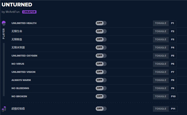 未转变者修改器,该修改器专为steam版本打造,提供了强大的修改辅助功能,通过该工具可以轻轻松松的帮助玩家在游戏中获得无限生命、无限体力、无限食物、无限水、无限氧气等供十一项功能,从而即可有效的降低游戏难度,更好的带来玩家进行通关。除此之外,未转变者修改器操作简单,使用方便,只需要先打开游戏,然后再输入对应键位,即可获得强力辅助功能,是你游戏必备神器。还等什么,有需要的玩家快来下载体验吧。