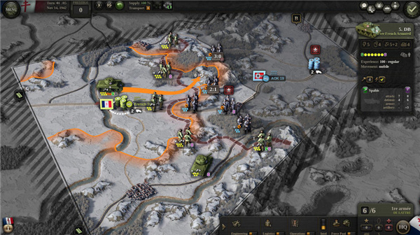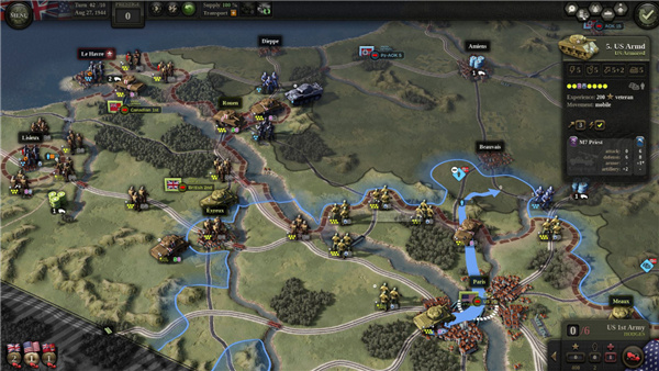 4、游戏中有着后勤补给这一玩法,每个单位都需要补给,如果一个单位未获得补给的话,那么没过一个回合就会变弱,游戏中长按快捷键可以查看补给网络。
