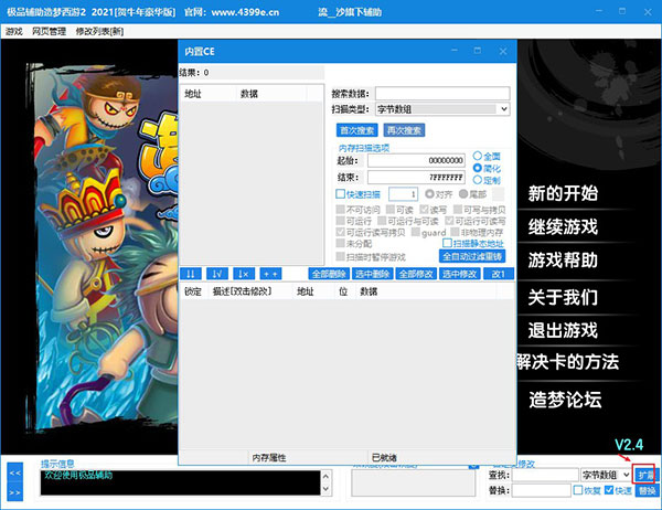 5、另外,点击右下角的扩展,可看到还内置了ce修改器让你自由操作,随意修改游戏数据;