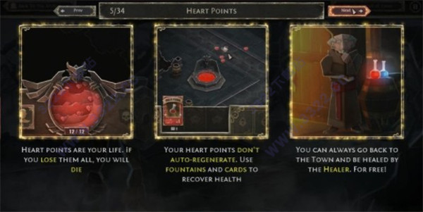 人物的心形点数不会自动恢复。使用血泉和代表回血瓶的卡牌,就可以恢复健康了。