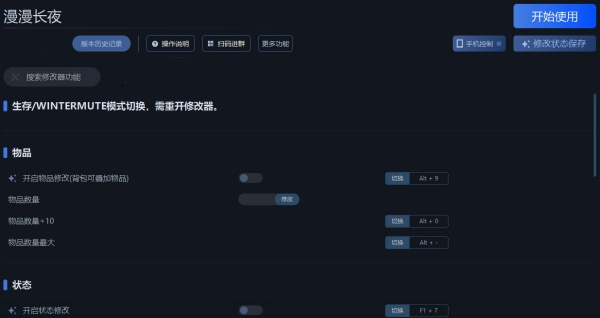 漫漫长夜修改器是一款针对于第一人称生存模拟游戏《漫漫长夜》所开发的修改辅助工具,它可以帮助玩家实现不会饥饿、没有负重、不会寒冷、子弹时间、不会疼痛等多项修改功能。有了这些修改之后,你就能在游戏中无所顾忌地进行冒险!