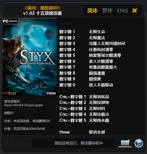 冥河暗影碎片修改器是一款专为《冥河暗影碎片》所打造的多功能修改器,它提供一键开启克隆人无限持续时间、无限技能点、无限魔法、超级速度等修改功能,助力玩家轻松畅玩游戏,快速展开冒险。且修改器简单易用,玩家只需开启游戏、启动修改器即可进行修改。