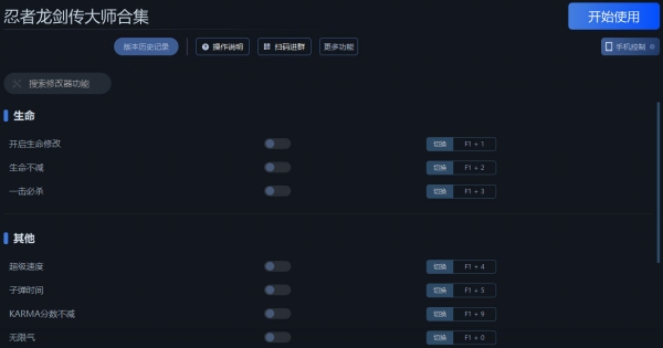 忍者龙剑传大师合集修改器是一款专为动作冒险游戏《忍者龙剑传大师合集》所打造的多功能修改器,它具有生命不减、对手最低生命/一击必杀、子弹时间、超级速度、最大连击、黄魂不减等十二项修改功能,且修改器简单易用,玩家只需启动游戏、开启修改器即可进行修改。