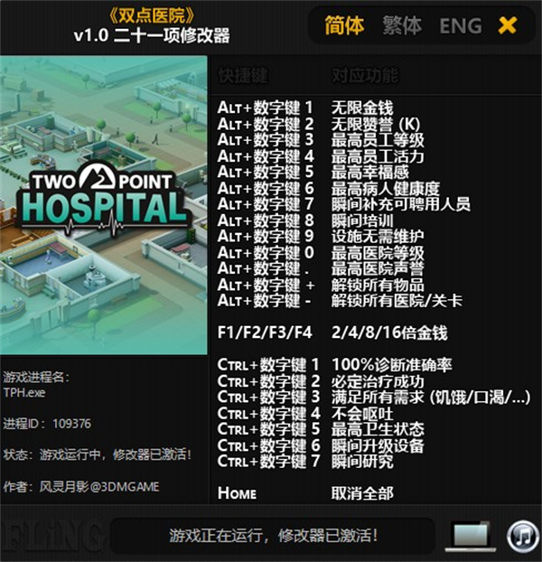 1、“无限金钱”和“无限赞誉 (K)”在数值改变或者更新数据时生效;“解锁所有物品”在解锁一个物品或者切换一下菜单后生效;“解锁所有医院/关卡 ”在进入地图时生效;“瞬间培训”在导师进入培训室时生效。