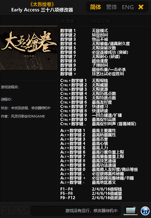 太吾绘卷修改器是一款专为国产武侠游戏《太吾绘卷》所打造的多功能修改器,它内置无敌模式、锁定时间、物品不减、无限装备、无限突破次数、超级速度、子弹时间、一击必杀、无限威望、无限资源、最高友好度等三十八项修改功能,且修改器简单易用,玩家只需启动游戏、开启修改器即可进行修改。