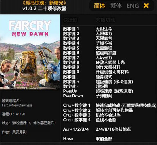 孤岛惊魂新曙光修改器是孤岛惊魂新曙光这款游戏的辅助软件,提供了无限生命、无限体力、无限氧气等多项修改功能,让玩家有更好的游戏体验。有需要的小伙伴欢迎下载使用。