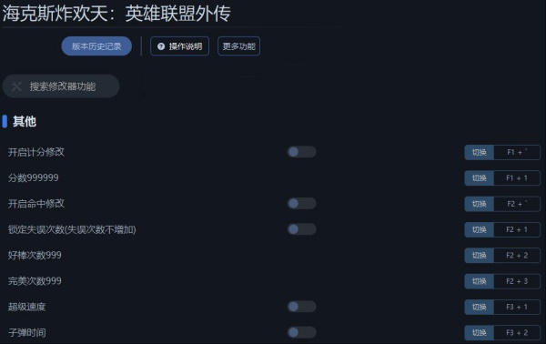 海克斯炸欢天英雄联盟外传修改器是专门针对这款游戏制作的游戏辅助工具,玩家使用该修改器可以快速的修改游戏当中的参数,比如计分999999、完美次数999、好棒次数999等多项修改功能,以此帮助你获得更好的游戏体验。海克斯炸欢天英雄联盟外传修改器使用方法简单,玩家只需启动游戏打开修改器即可直接使用,其便捷的操作可以很好的让你畅玩游戏。