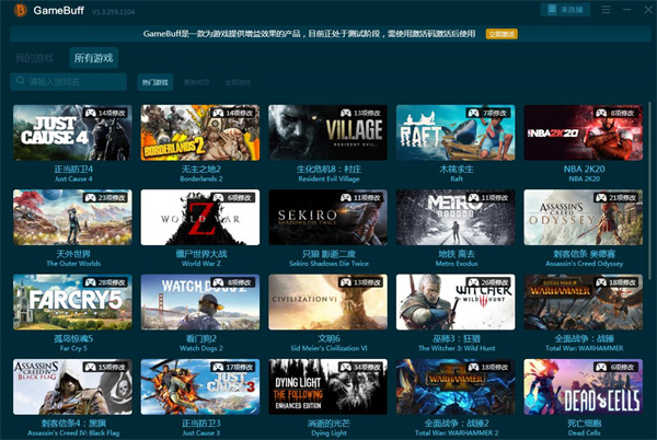 1、GameBuff提供全球最火热最新的游戏修改器