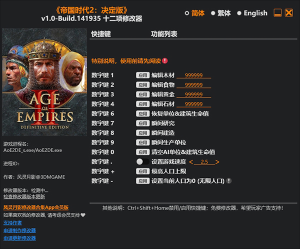 帝国时代2决定版修改器风灵月影版 v1.0-build.158041