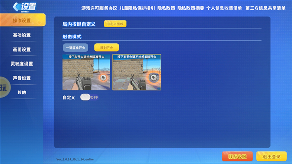 1.基础设置。基础设置里面的射击模式,我们可以看一下。那里有一键开火模式和腰射模式。建议点腰射模式。因为一键开火模式很容易被对手击败,腰射模式,可以在被对手接近的同时,做出开镜和不开镜的决定。
