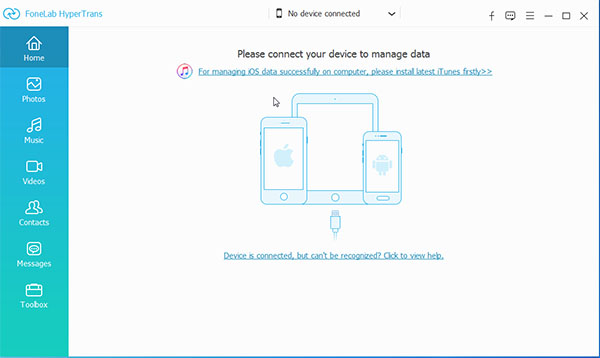 首先,您应该在计算机上下载并安装FoneLab HyperTrans 。然后启动它。连接您想要传输的来源或目标的设备。