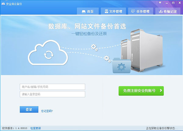 (1)云备份Web端:登录(备注:登录两个字加链接效果)安全狗云备份,通过浏览器方式进行备份文件管理;