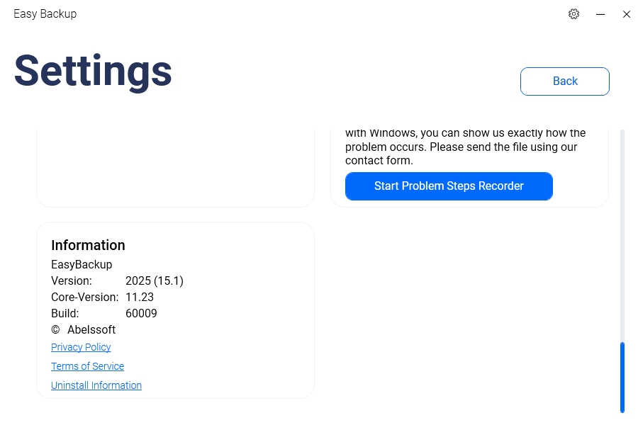 EasyBackup是一款由Abelssoft公司推出的易用性电脑备份软件。软件界面清爽简约,操作非常简单,用户只需依提示操作,即可备份多个项目到CD、DVD或FTP位置,而且EasyBackup还能够完美运行在win7/win8/win8.1等更高的系统上!Abelssoft EasyBackup支持备份个人文件夹、文档、图片、音乐、视频等,还能够支持速度压缩备份,让你的数据可以得到更安全的保护,全面满足用户的各种使用需求!