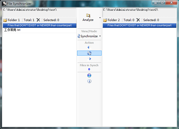 同步模式与 Analyze 分析功能需要结合使用,选择一种合适的同步方式,然后再点击分析,下面的文件列表就会列出这次将要同步的文件列表,如果没问题,点击 Action 下面的同步按钮就行了。