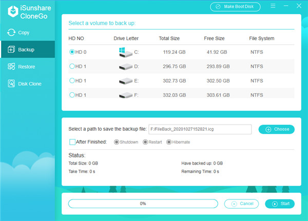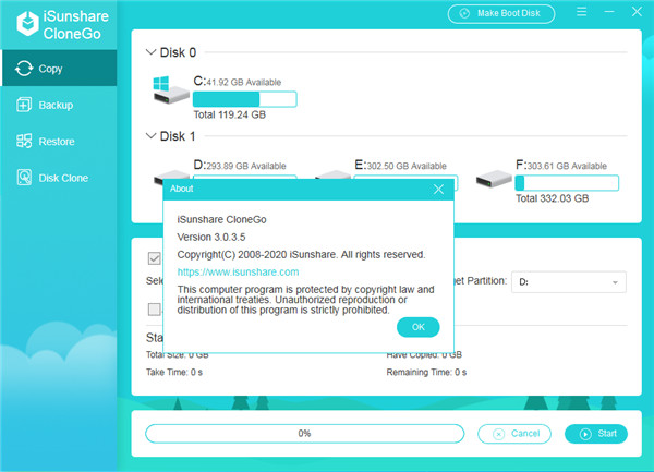 iSunshare CloneGo是一款十分专业好用的Windows克隆和partiton备份恢复还原工具应用,软件精致简约、功能强大但使用便捷。采用了全新独特的系统数据克隆技术,具有克隆、备份以及恢复三个模板特色功能任你使用。旨在通过简单的操作步骤帮助用户快速有效的将电脑中的系统数据克隆至新的磁盘中,以便在碰到系统奔溃或者出现其他的故障情况时,用户可以轻松快速的备份恢复之前的数据,保护你的数据安全,除此之外,iSunshare CloneGo还支持用户快速创建一个系统或分区的副本,以此增强数据保护模式,提高系统和分区的可恢复性。让你从此不再担心数据遗漏丢失啦!有需要的朋友欢迎前来下载下载使用哦!