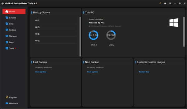 MiniTool ShadowMaker不仅为您的图像文件提供密码保护,还提供两种数据加密方法来保护图像备份文件。