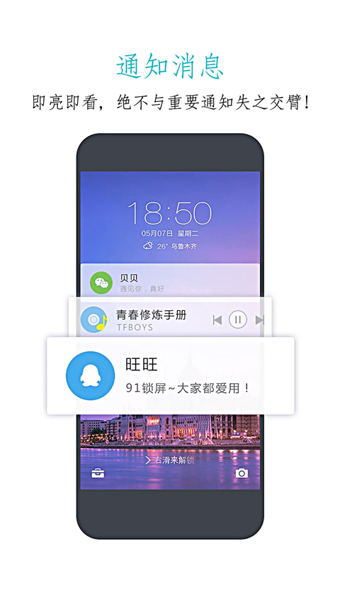 锁屏界面即可快速查看消息,绝不与重要通知失之交臂。