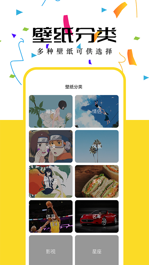 壁纸无忧是一款非常实用手机壁纸服务应用,也是一个原创壁纸发源地,提供了数百万高清壁纸资源任你挑选,资源丰富种类齐全,精选了二次元、动漫新番、热门游戏,娱乐明星、动物萌宠、网络红人各种类型全方位满足你的使用需求。在这里你可以自由选择感兴趣的分类查着,也可通过内置的强大搜索引擎,更加快速精准的找到你想要的壁纸内容,只需一键下载设置即可瞬间拥有你想要的桌面效果,让你的手机壁纸更加精密个性化。