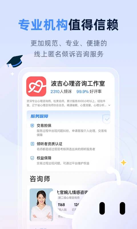 倾听者经过平台严格的审核认证,服务质量有保障。