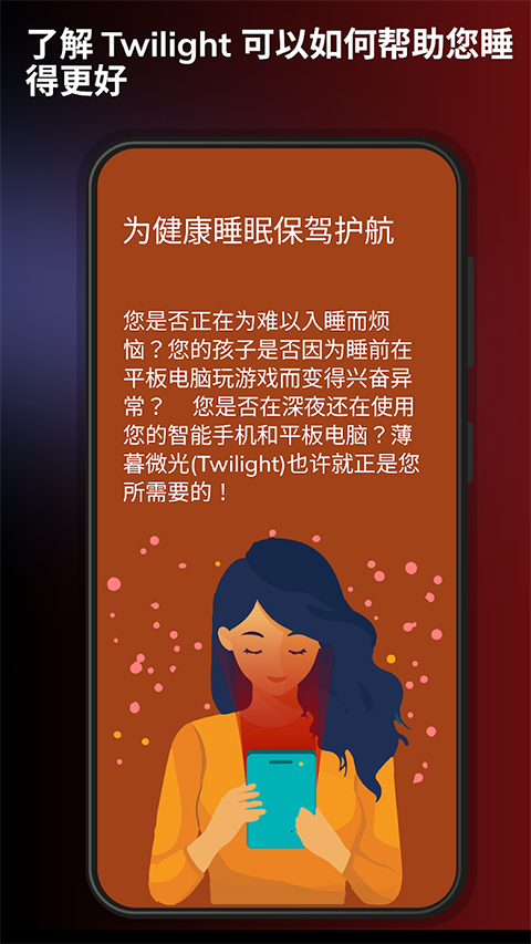 薄暮微光app能够完美运行于安卓手机和平板、Chromebook笔记本、安卓手表、安卓电视等等产品,而且操作简单易用,非常适合长期观看电子屏幕和IT行业的从事者。