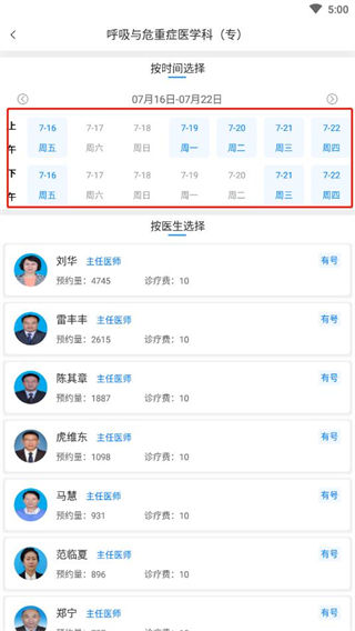 3、最后选择科室,然后选择时间和医生即可进行预约挂号了