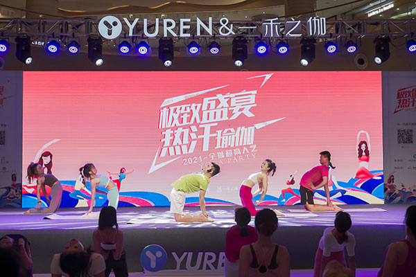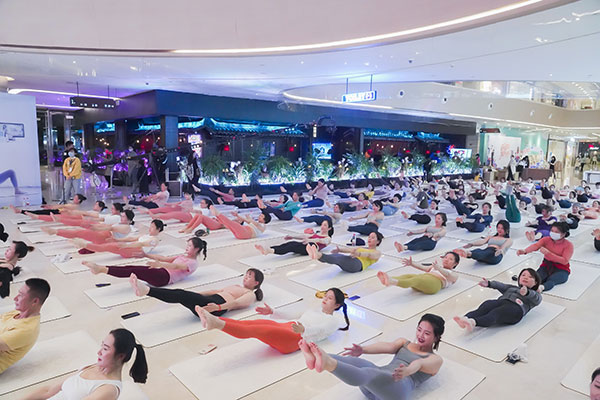 YUREN瑜伽APP携手一禾瑜伽于双子塔下绿地缤纷城内商场一楼大厅开启一场欢快、愉悦的热汗体验。