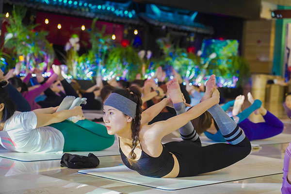 当天,120余名瑜伽爱好者身穿瑜伽服,踏上瑜伽垫,在全美瑜伽联盟RYT500导师BEX、全美瑜伽联盟认证导师、FLOW瑜伽创始人张兵两位专业瑜伽导师的指导下,一起呼吸、一起伸展,一起释放压力、唤醒内心觉知和自我、激发体内无限潜能,共同感受生命能量的流动,全身心去体验这场时尚、炫酷、潮流的而舒展身心的瑜伽派对。
