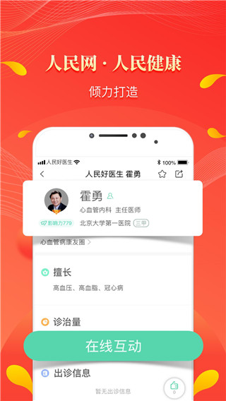 汇聚全国三甲医院名医,副主任以上医师在线直播。每周数位知名专家做客人民网,与网友就疾病与健康的热门话题进行实时互动。