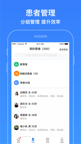 2、病人管理,患者血糖动态全掌握。